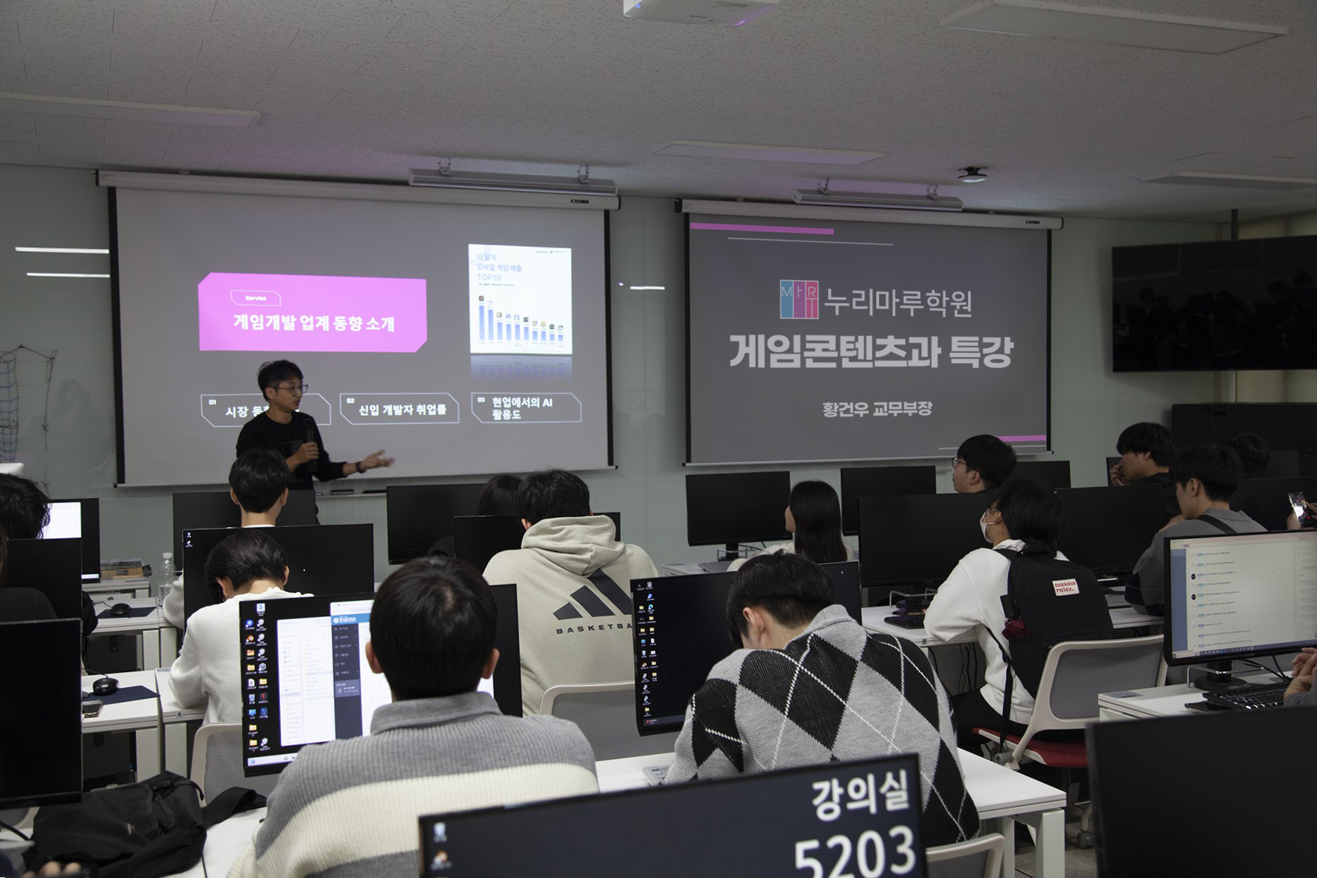 누리마루학원이 동서울대학교 게임콘텐츠학과학생들을 대상으로 특별한 강의를 진행했다는 소식을 전해드립니다! 이번 특강은 게임 그래픽 분야에서 전문성을 키우고 싶은 학생들에게 실질적인 도움을 주기 위해 마련되었습니다.