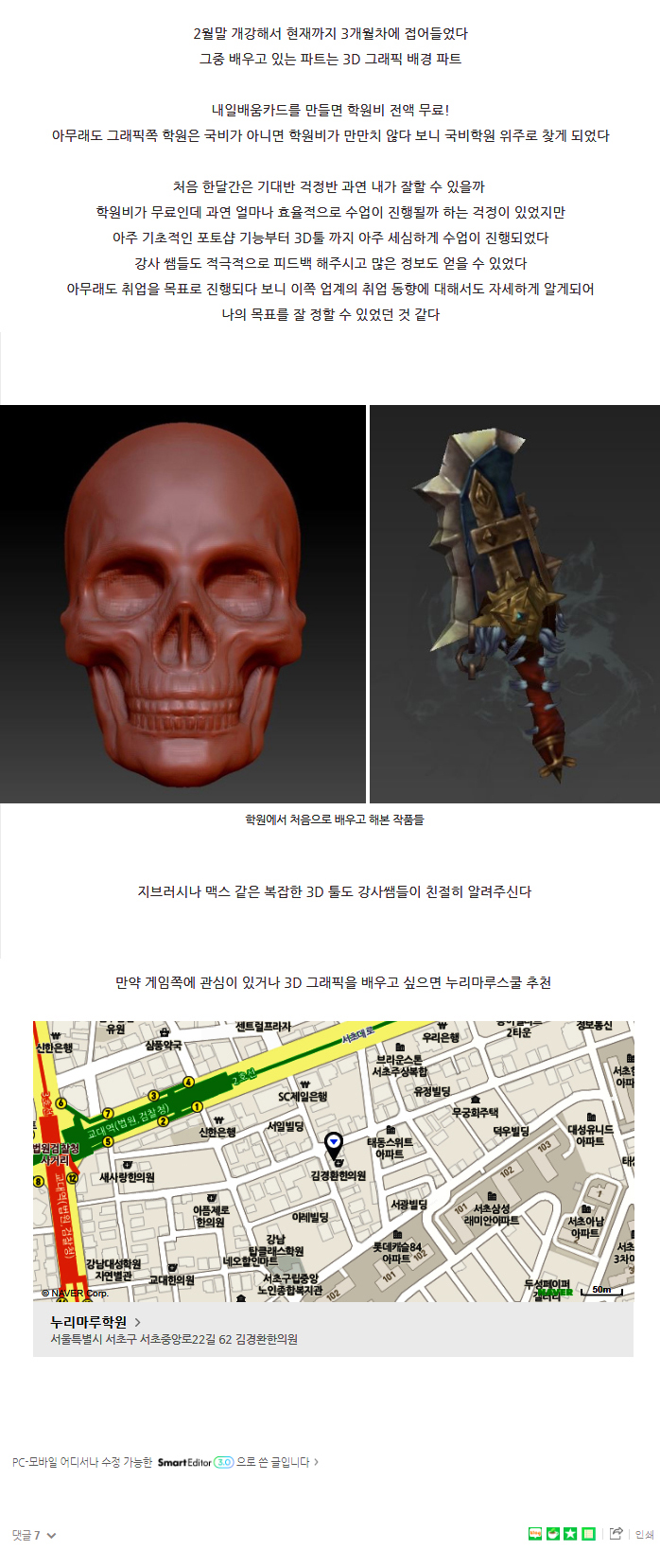 아무래도 그래픽쪽 학원은 국비가 아니면 학원비가 만만치 않다 보니 국비학원 위주로 찾게 되었다
