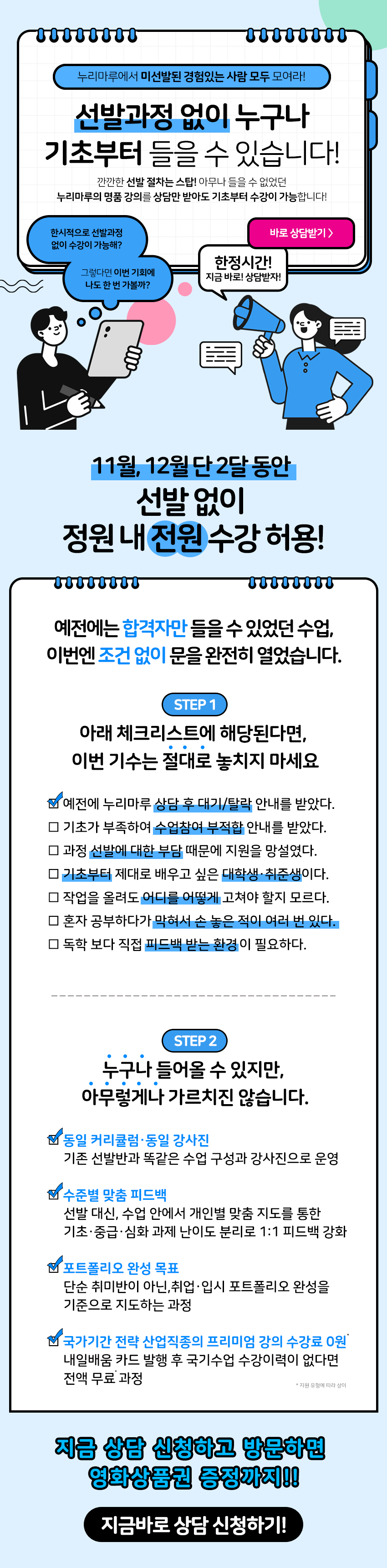 • 2D·3D·웹툰 과정, 최대 100% 지원 수강 🌟모집 중!🌟