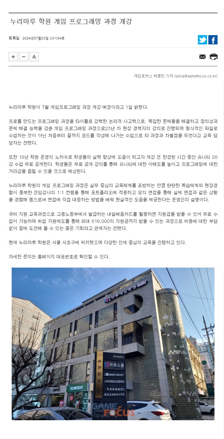 마루게임스쿨의 언론보도 소식입니다.