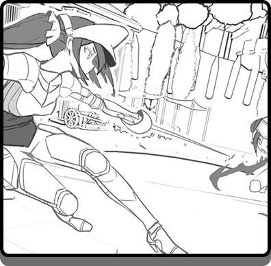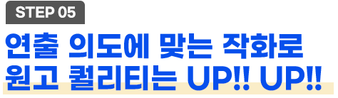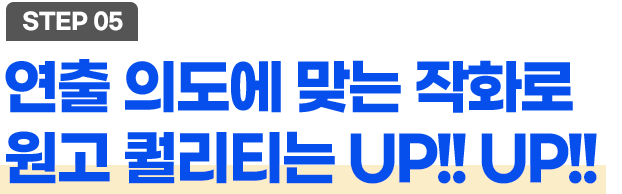 주연, 조연, 엑스트라를 묘사하고 도형화 기반의 인물, 복식을 묘사하는 방법을 배우고 이야기를 더욱 몰입도 있게 전달하기 위해 집중선, 효과선의 묘사와 작화 클린업, 선을 활용한 먹선, 겹선, 속도선의 묘사를 실습하며 작품의 퀄리티를 한 층 끌어올리는 단계입니다.