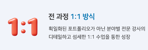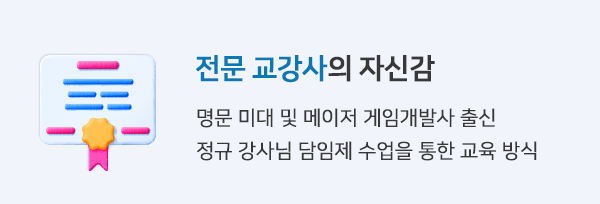 명문 미대 및 메이저 게임개발사 출신 선생님들로 구성된 강사진은 학생의 목표와 성장을 위해 함께 노력하고,