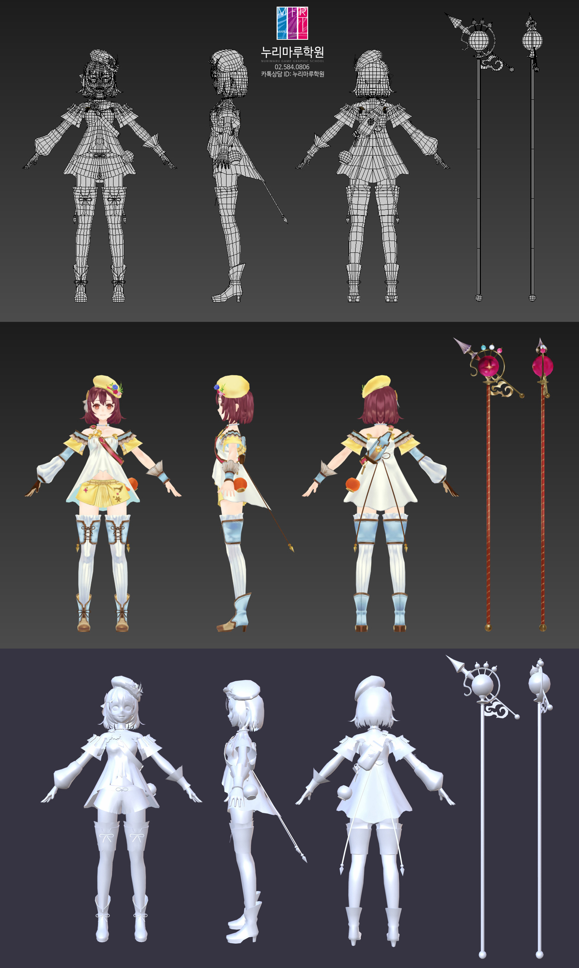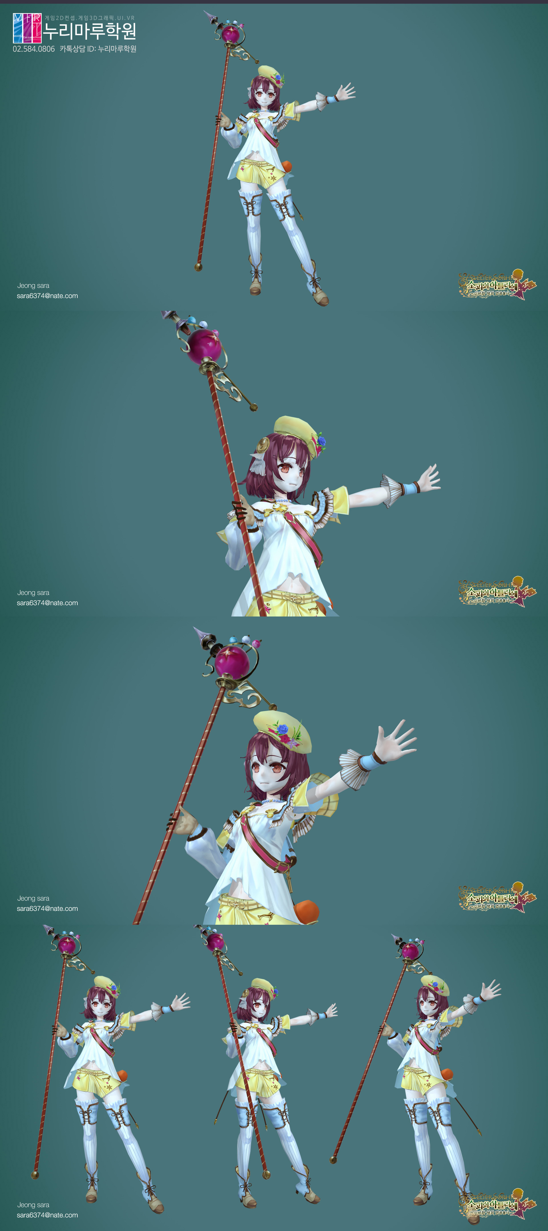 거스트 社 아틀리에 시리즈 '소피의 아틀리에' 게임에서 소피를 3D로 작업한 작업물입니다~ 색감이나, 각 소품들에 대한 모델링도 캐릭터에 맞게 이쁘게 잘 표현되었네요~ 정사라 학생의 작품입니다. :)