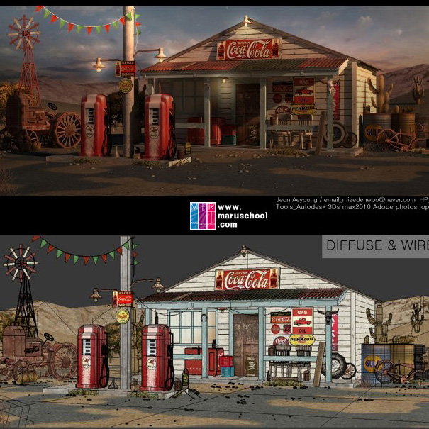 전애영학생이 작업한 주유소 편의점 건물입니다.