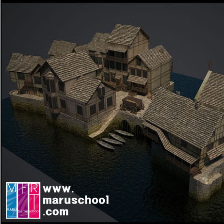 오승철 학생이 작업한 동양 무협 건물 씬입니다.