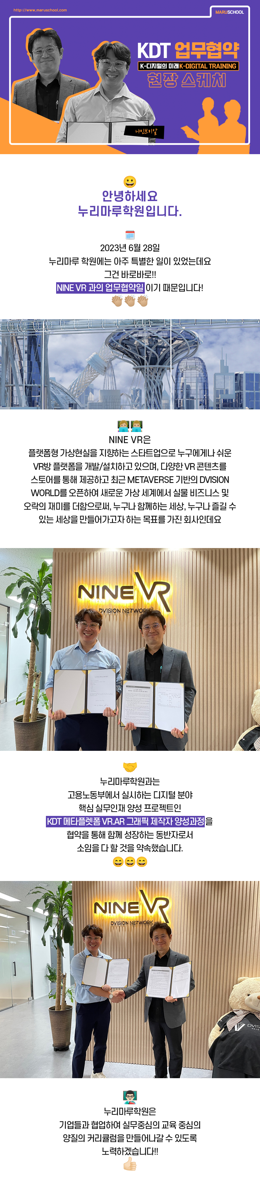 nine vr x 누리마루학원 [ KDT 메타플렛폼 VR.AR 그래픽 제작자 양성과정]