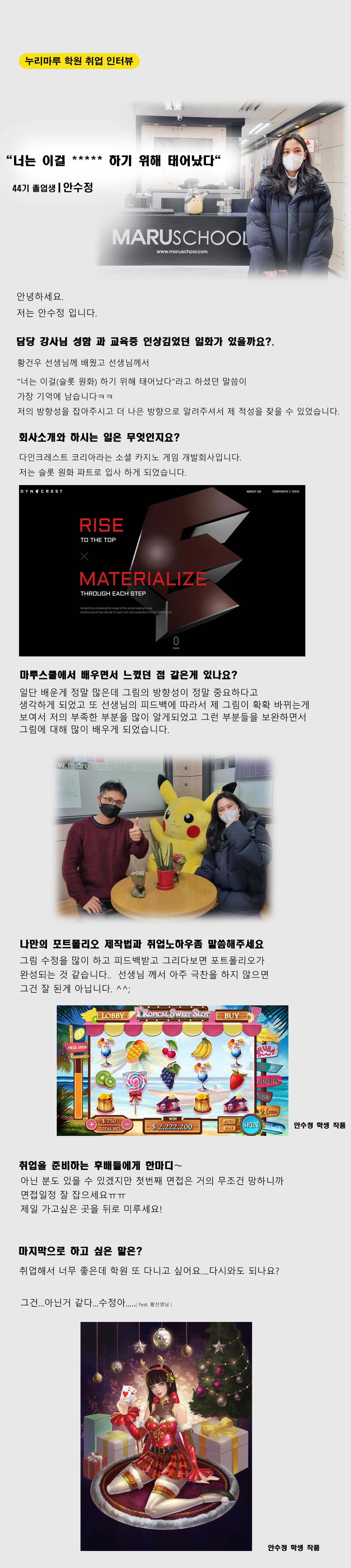 마루게임스쿨에서 취업한 교육생의 인터뷰입니다.