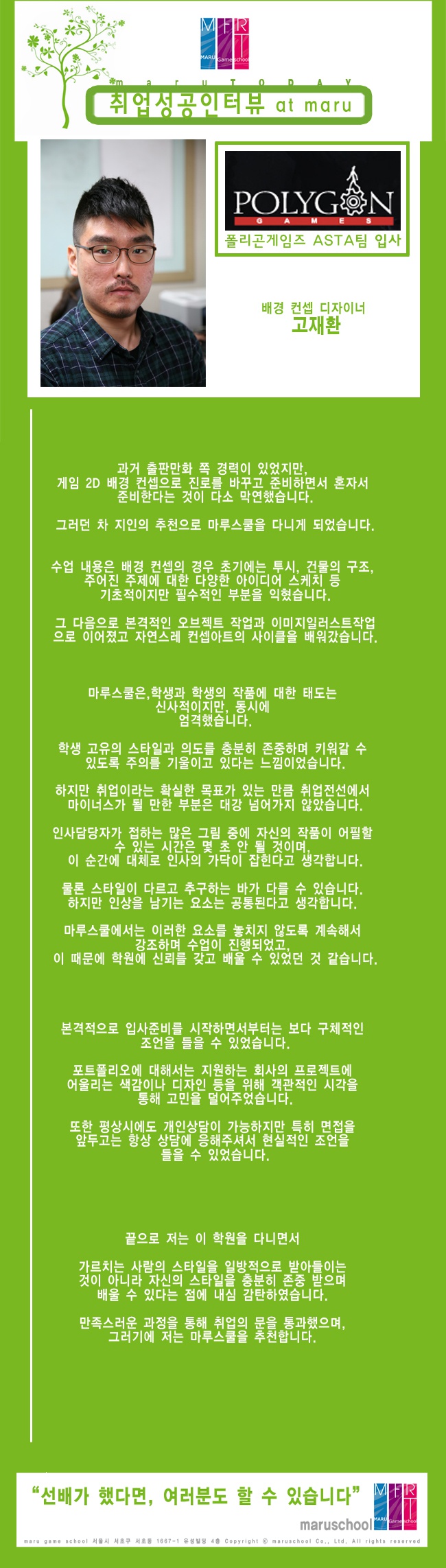 마루게임스쿨에서 취업한 교육생의 인터뷰입니다.