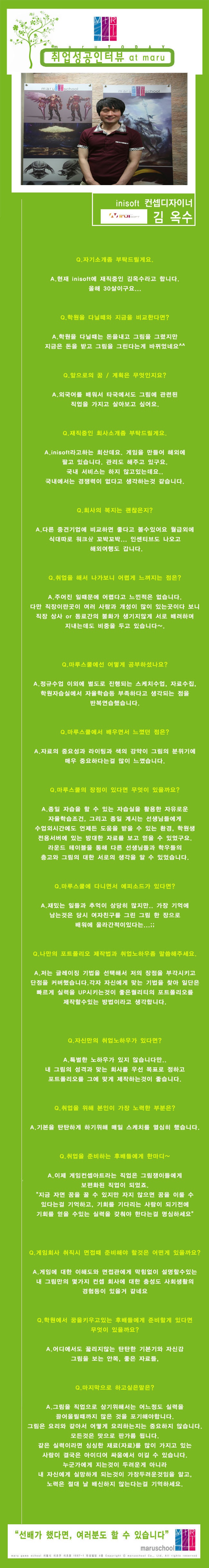 마루게임스쿨에서 취업한 교육생의 인터뷰입니다.
