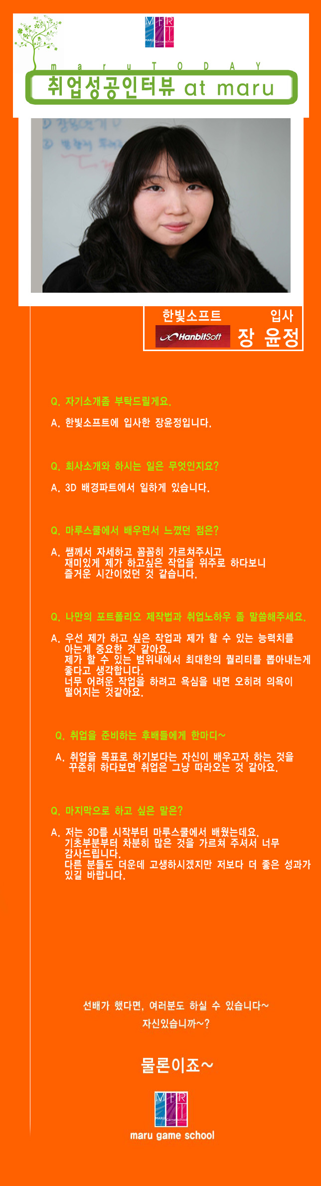 마루게임스쿨에서 취업한 교육생의 인터뷰입니다.