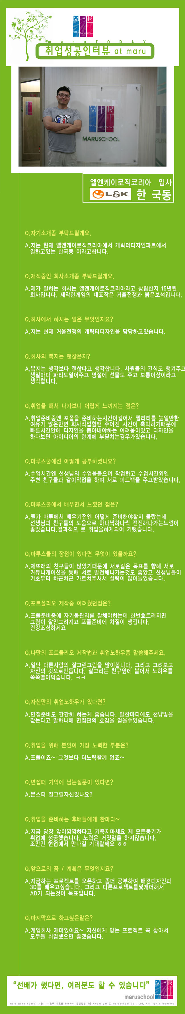 마루게임스쿨에서 취업한 교육생의 인터뷰입니다.