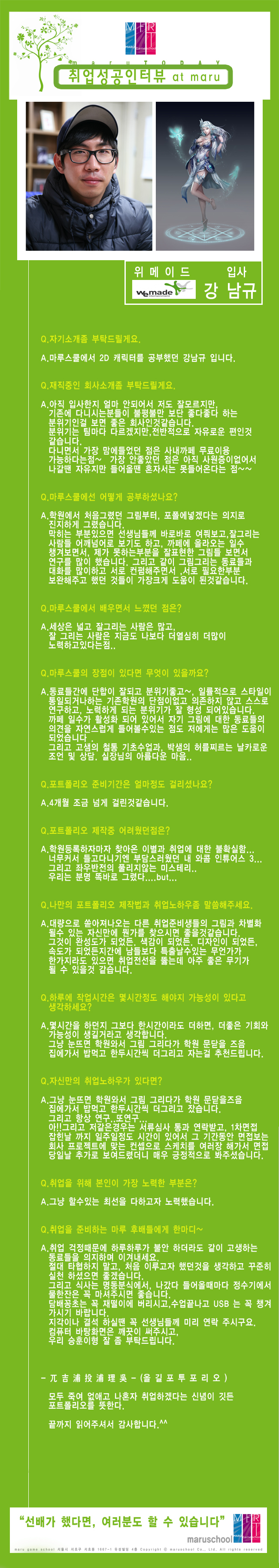 마루게임스쿨에서 취업한 교육생의 인터뷰입니다.