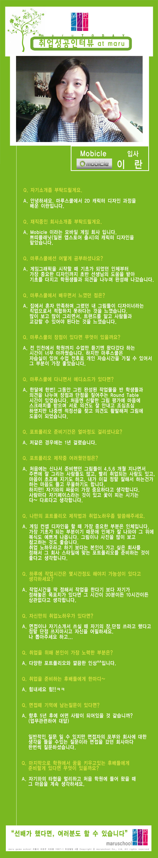 마루게임스쿨에서 취업한 교육생의 인터뷰입니다.