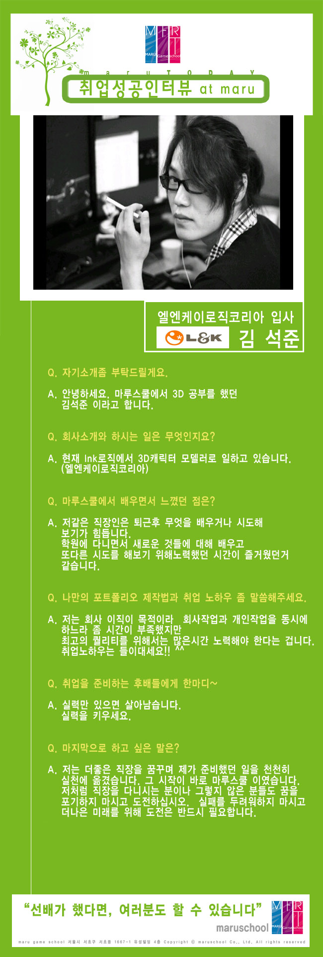 마루게임스쿨에서 취업한 교육생의 인터뷰입니다.