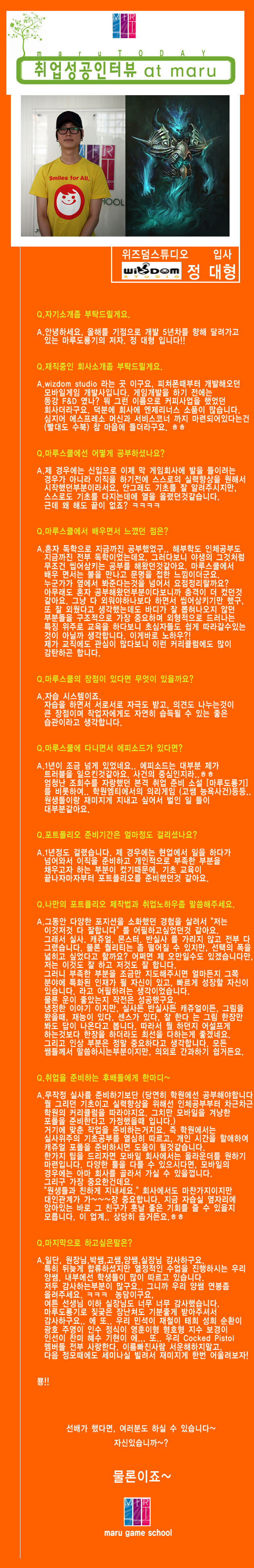 마루게임스쿨에서 취업한 교육생의 인터뷰입니다.