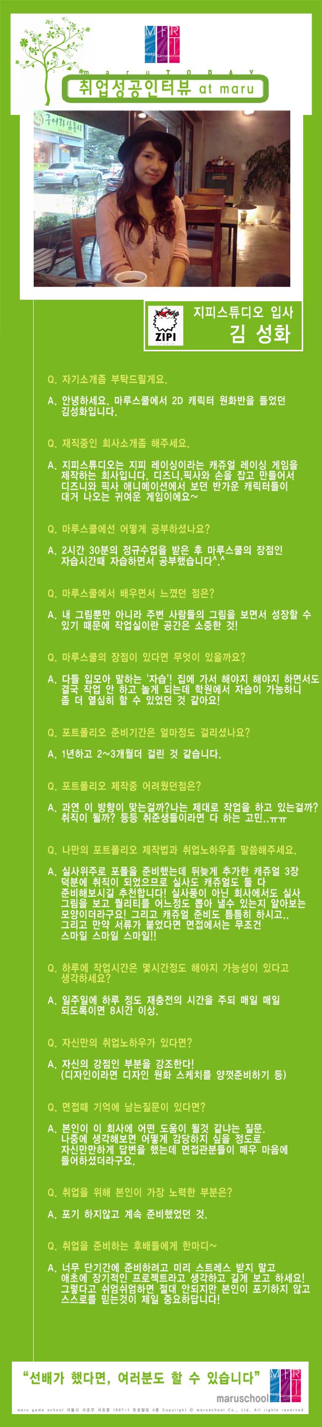 마루게임스쿨에서 취업한 교육생의 인터뷰입니다.