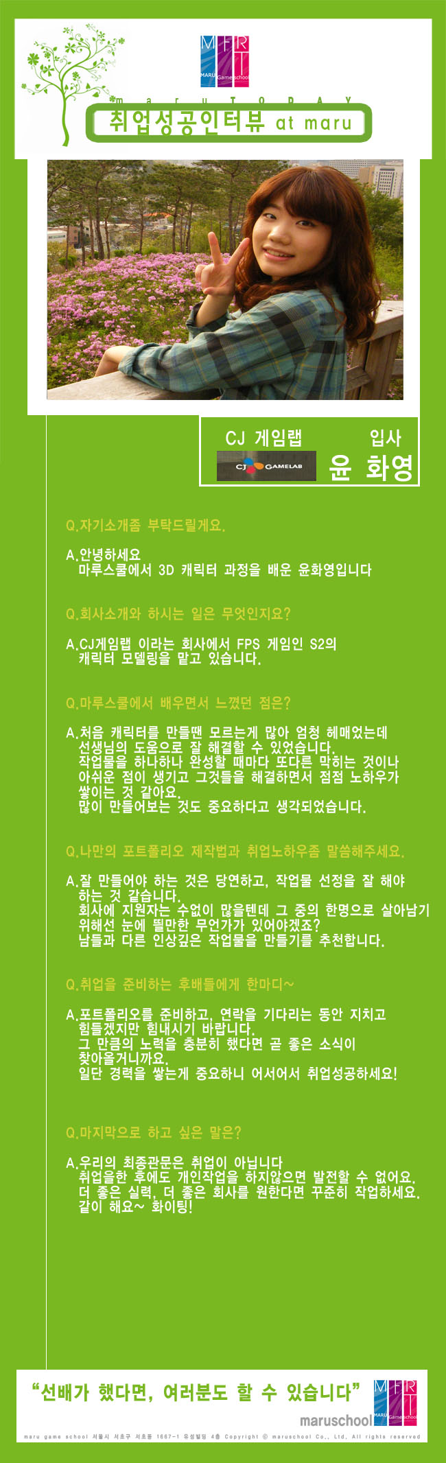 마루게임스쿨에서 취업한 교육생의 인터뷰입니다.