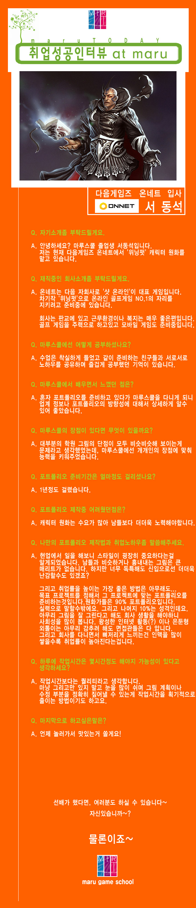 마루게임스쿨에서 취업한 교육생의 인터뷰입니다.