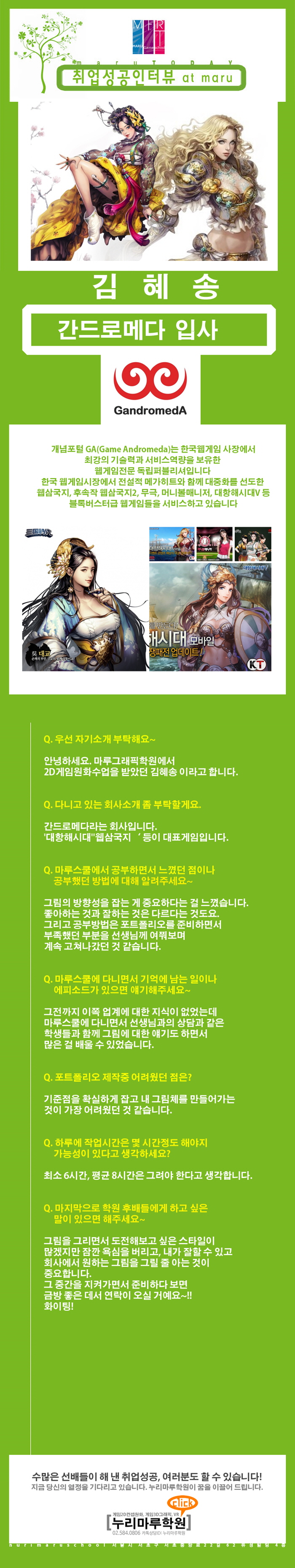 마루게임스쿨에서 취업한 교육생의 인터뷰입니다.