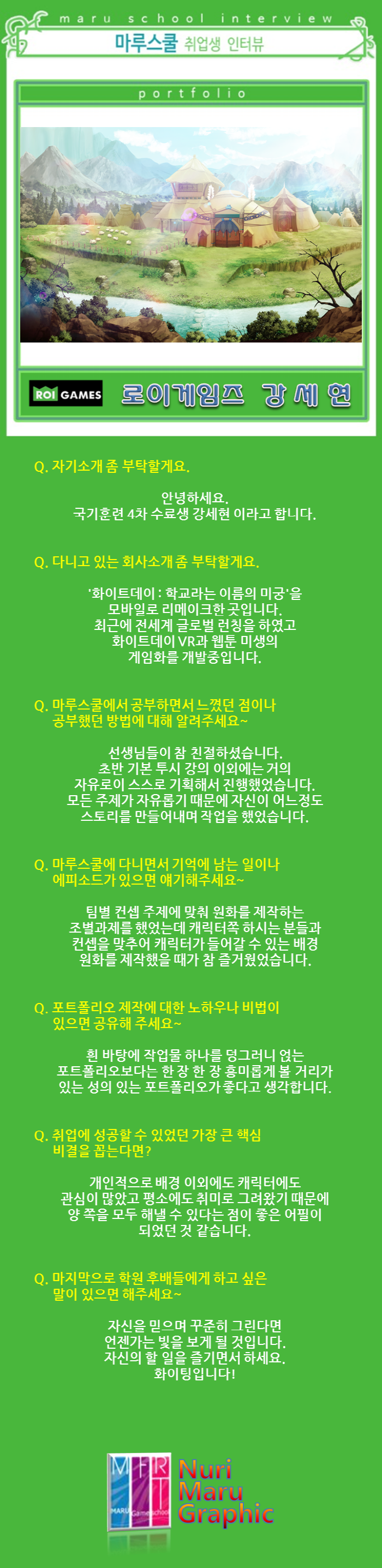 마루게임스쿨에서 취업한 교육생의 인터뷰입니다.