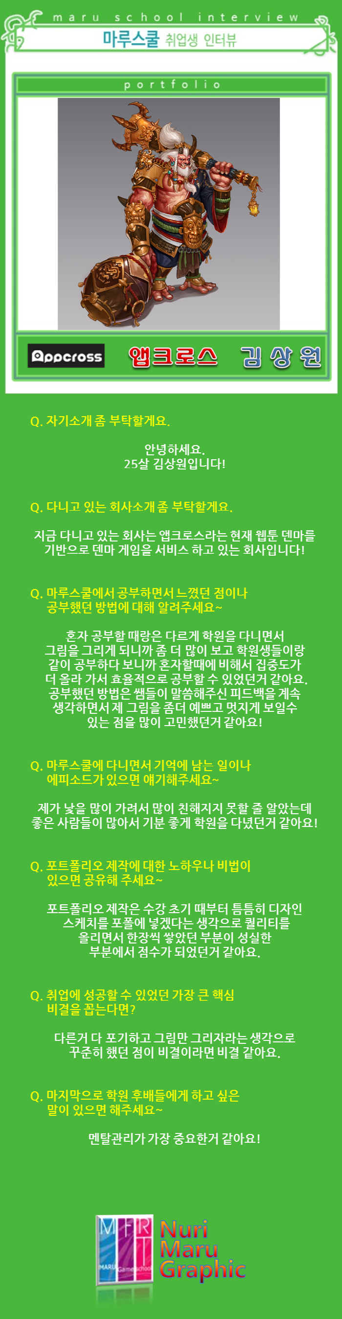 마루게임스쿨에서 취업한 교육생의 인터뷰입니다.