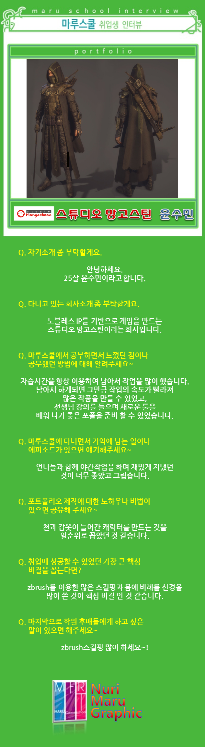 마루게임스쿨에서 취업한 교육생의 인터뷰입니다.