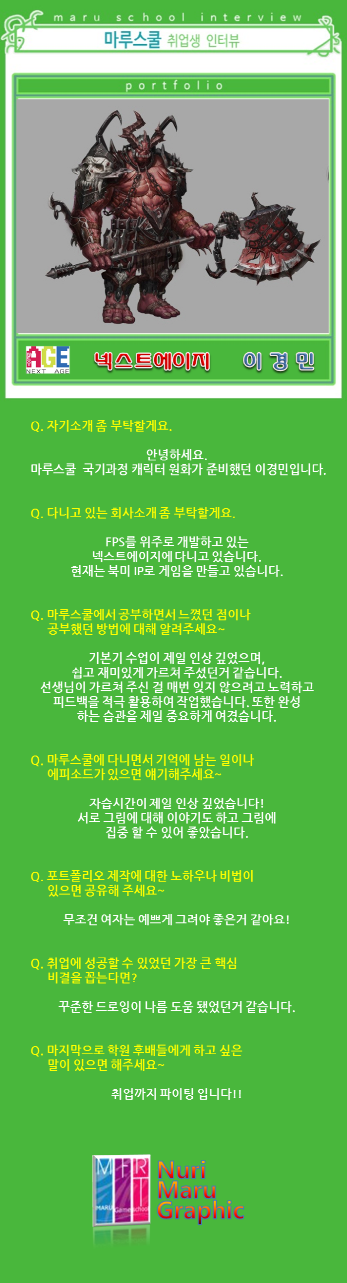 마루게임스쿨에서 취업한 교육생의 인터뷰입니다.